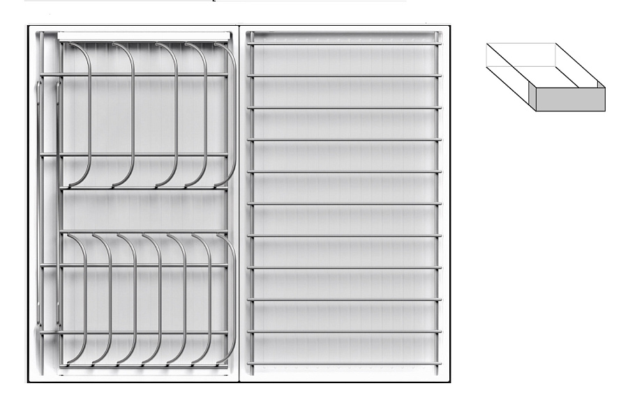• 1 большой модуль для посуды + 1 малый модуль с решеткой + модуль для столовых приборов