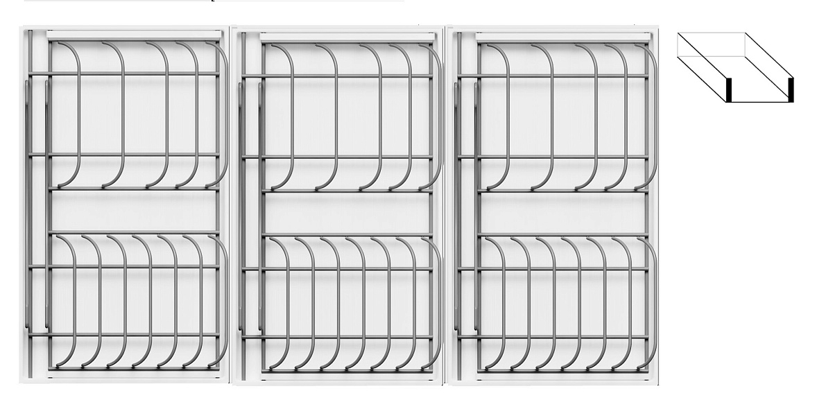 3 модуля для посуды большие (каждый модуль 423 x 248 мм, состоит из 1 х держатель металлический, 1 х поддон пластиковый, 2 х защелка-ограничитель)