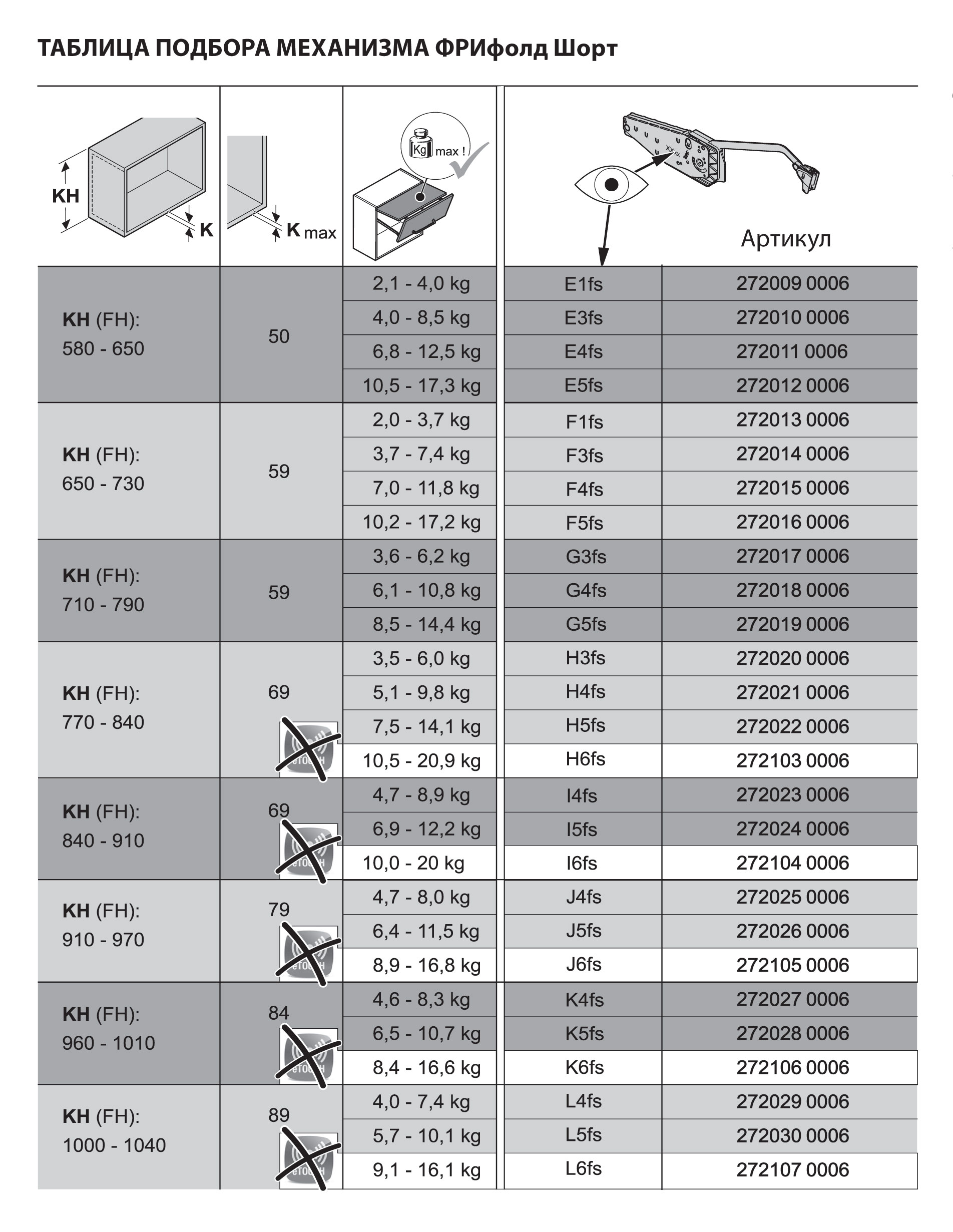 Подъемник ФриФолд Шорт I5fs H840 - 910 мм 7,0-12,3 кг без крышек, без петель