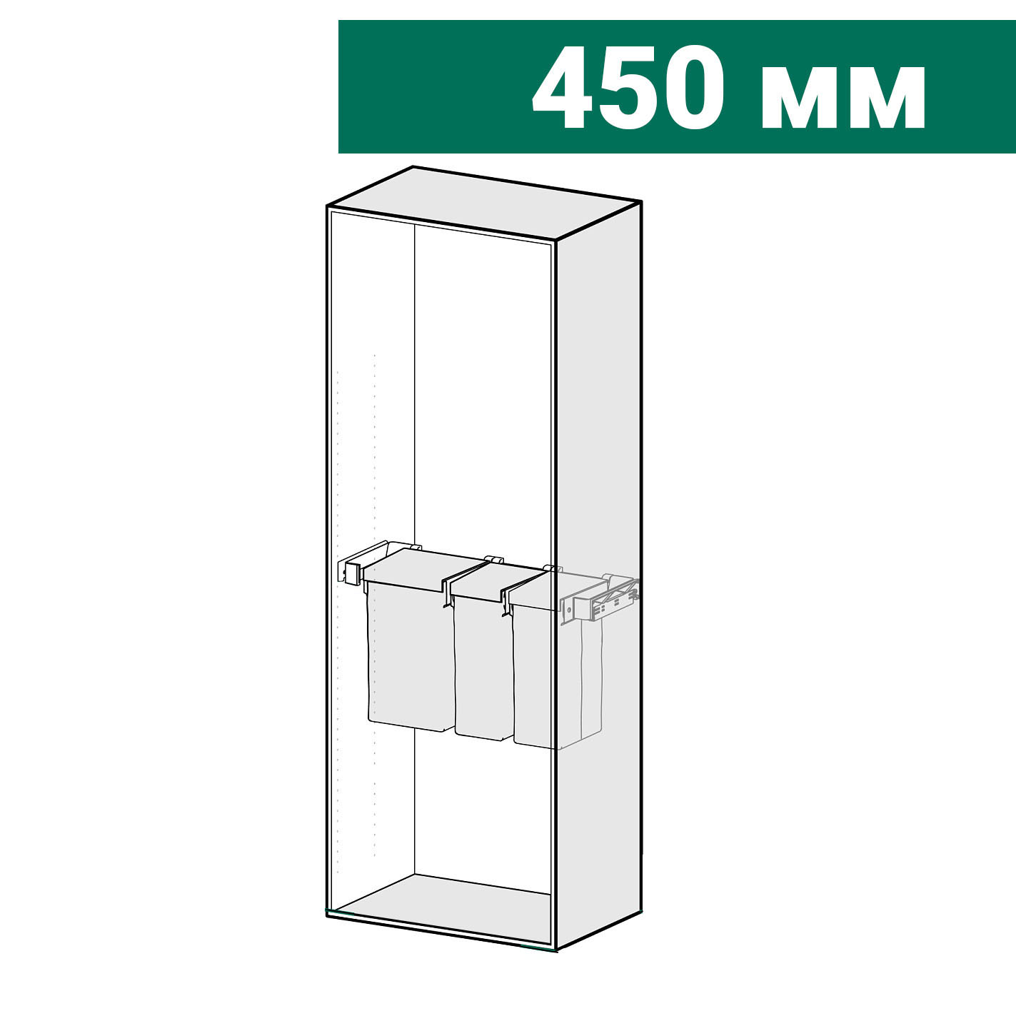 КОМПЛЕКТ Мешок для белья 450 мм Конеро W 910-970 мм, D 475 мм; мешок узкий 2 шт; вешалки 5 шт; черный Kessebohmer | официальный магазин