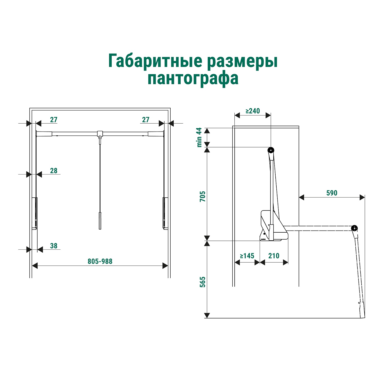 Conero Пантограф для гардеробной усиленный, Конеро W 805-988 мм, нагрузка 4-15 кг